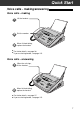 Quick Start Faxes - sending/receiving Faxes - sending 1 Open the document feeder tray. 2 Adjust the width of the document guides to the size of the document. 3 Insert the document until the unit grabs the document and a single beep is heard. FA (up t CE DOW o 15 page N s) 4 Dial the fax number. 5 Press START/SET/COPY . ● ● 8 For further details, see page 54. If you are having trouble, see pages 115 and 116.