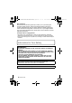 VQT2K62~Safety_eng.fm 4 ページ 2009年12月25日 金曜日 午後8時6分 ∫ About the battery pack CAUTION Danger of explosion if battery is incorrectly replaced. Replace only with the same or equivalent type recommended by the manufacturer. Dispose of used batteries according to the manufacturer’s instructions. • Do not heat or expose to flame. • Do not leave the battery(ies) in an automobile exposed to direct sunlight for a long period of time with doors and windows closed. Warning Risk of fire, explosion and burns.