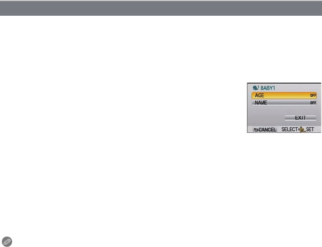 • If [AGE] or [NAME] is set to [OFF] even when the birthday or name has been set, the age or