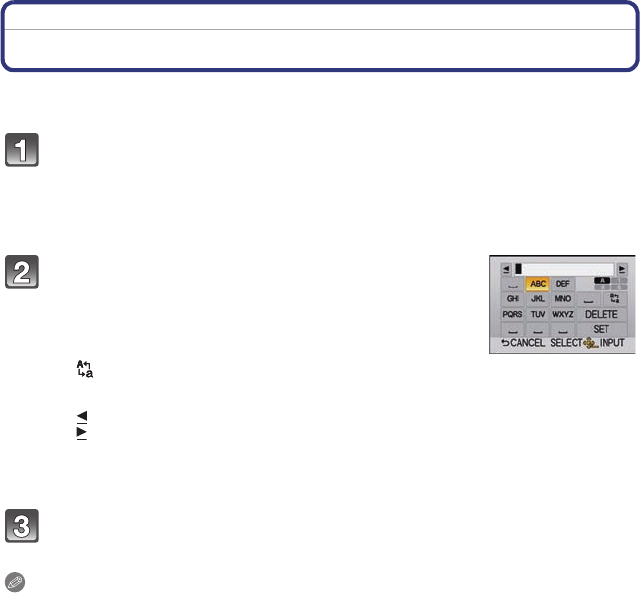 • A maximum of 30 characters can be entered. (Maximum of 9 characters when setting