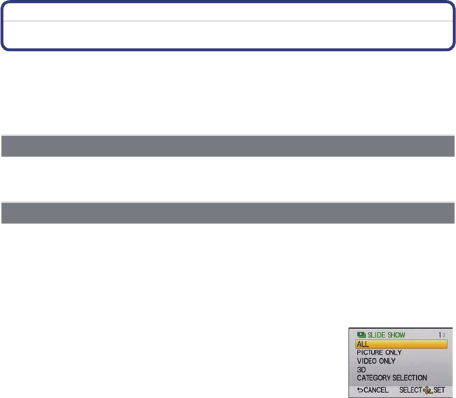 1 Select [SLIDE SHOW] on the [PLAYBACK] Mode menu. (P56)