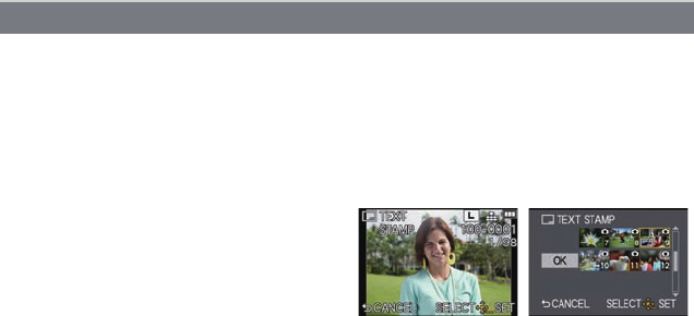 5 Press 3/4 to select text stamp items, and then press [MENU/SET].