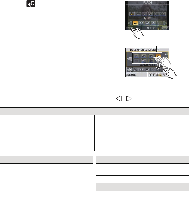 • Menu item or Settings can be switched by touching [ ]/[ ].