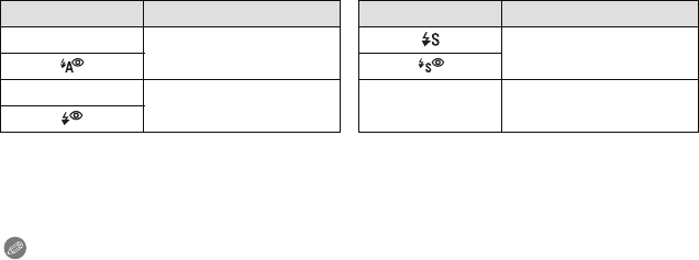 Flash setting Shutter speed (Sec.) Flash setting Shutter speed (Sec.)