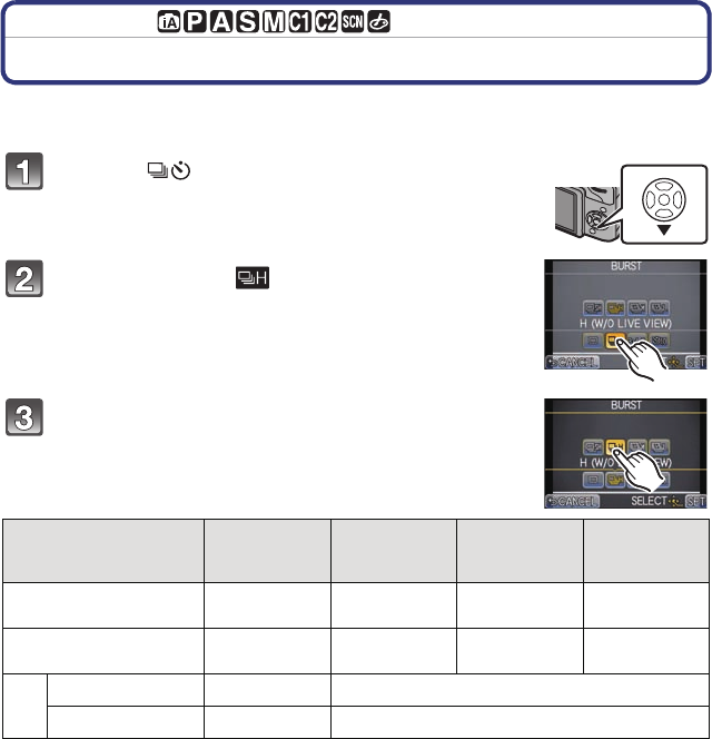 • Burst speed can also be set with [BURST RATE] in [REC] Mode menu.