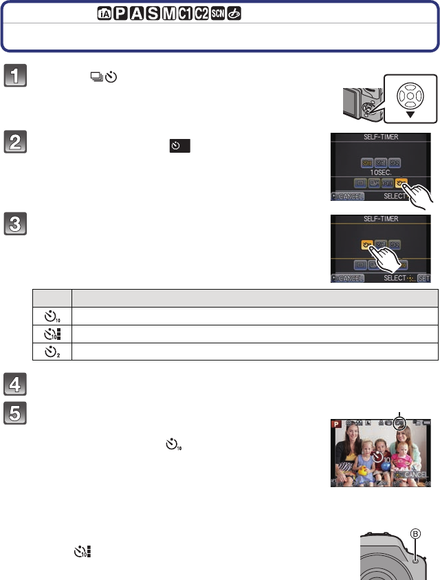 • When [ ] is selected, the self-timer indicator blinks again after the