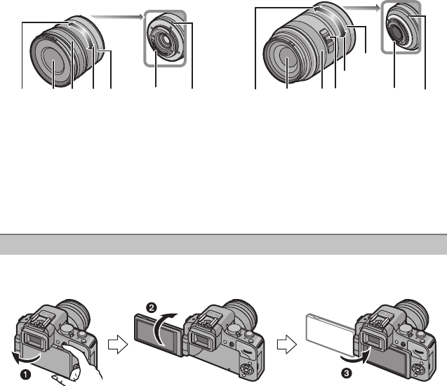 At the time when this camera is purchased, the LCD monitor is stowed in the camera body.