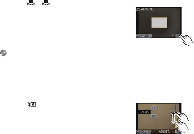 1 Select [ ], [ ] and then touch [WHITE SET].