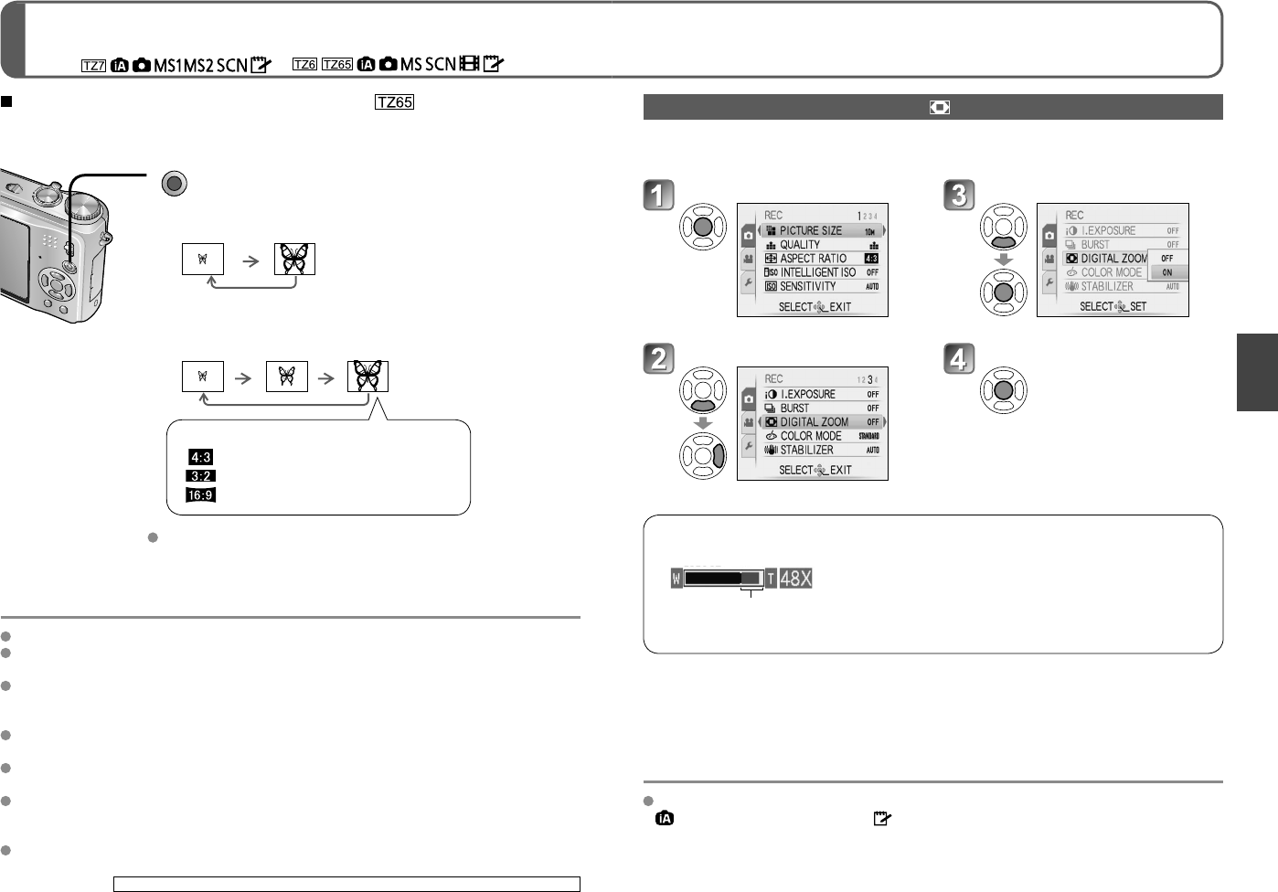 ‘DIGITAL ZOOM’ (P.39) is set to ‘ON’.