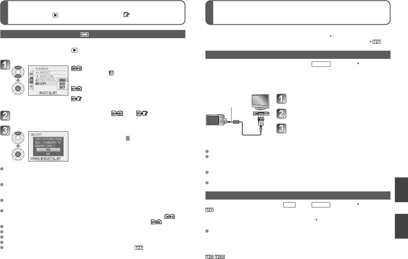 Set-up: Press ‘MENU/SET’ → ‘ PLAYBACK menu’ → Select ‘COPY’