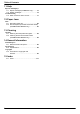 Table of Contents 11. Help Reports and Displays 11.1 Report messages (KX-MB2030 only) ..........73 11.2 Display messages .......................................74 Troubleshooting 11.3 When a function does not work ...................77 12. Paper Jams Jams 12.1 Recording paper jam ...................................85 12.2 Document jams (Automatic document feeder) (KX-MB2010/KX-MB2030 only) ..................90 13. Cleaning Cleaning 13.1 Cleaning the white plates and glass ............92 13.