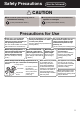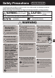 Safety Precautions Must be followed! WARNING ■■Clean the power plug ■■Discontinue using the appliance immediately and unplug the power regularly. cord in cases of abnormal situations and breaking down. (A soiled power plug may cause insufficient insulation due to the moisture, and may cause a fire.) • Unplug the power plug, and wipe with a dry cloth. (It may cause smoking, a fire, or electric shock.) • The power plug and the power cord become abnormally hot.