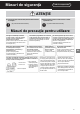 Măsuri de siguranţă Trebuie respectate! AVERTISMENT Curăţaţi fişa de alimentare în mod regulat. (O fişă de alimentare murdară poate cauza o izolaţie insuficientă din cauza umezelii şi poate provoca un incendiu.) • Deconectaţi fişa de alimentare şi ştergeţi-o cu o lavetă uscată. Întrerupeţi imediat utilizarea aparatului şi deconectaţi cablul de alimentare în situaţii de funcţionare anormală şi defectare. (Ar putea provoca fum, un incendiu sau electrocutarea.