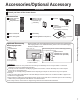 Accessories/Optional Accessory Accessories Check you have all the items shown. Accessories Remote Control Transmitter N2QAYB000570 Batteries for the Remote Control Transmitter (2) AC cord AA Battery TBL5ZX0029 (TC-P42S30) TBL5ZX0032 (TC-P46S30, TC-P50S30) Owner’s Manual Child safety Quick start guide Product Registration Card (U.S.A.) Wall-hanging bracket (angle) TY-WK4P1RW Please contact your nearest Panasonic dealer to purchase the recommended wall-hanging bracket.
