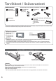 Tarvikkeet / lisävarusteet Vakiovarusteet Tarkista, että kuvan varusteet ja tarvikkeet ovat mukana Kaukosäädin • Kaukosäätimen paristot (2) OK N2QAYB000223 1 2 3 4 5 6 7 8 9 0 • Nippuside (2) Verkkojohto s. 8 s. 11 R6 (UM3) TV Käyttöohjeet Jalusta (ST-42R4-WK / ST-50R4-WK) • • Eurooppa-takuu • TBLX0061 (TH-37PV8P, TH-42PV8P) TBLX0058 (TH-50PV8P) s. 7 Tämä tuote sisältää mahdollisesti vaarallisia osia (kuten muovipusseja), joita pienet lapset voivat niellä tai vetää henkeensä.