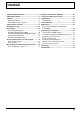 Innehåll Viktiga säkerhetsföreskrifter ..................................... 4 Säkerhetsföreskrifter .................................................. 5 Tillbehör .......................................................................8 Medföljande tillbehör .................................................. 8 Valfria tillbehör (köpes separat) ................................. 8 Fjärrkontrollens batterier ........................................... 9 Grundmanövrering ........................................