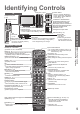 Identifying Controls TV Function select Swing door to open Headphones jack F (p. 50) F HDMI3 terminal (p. 50) TV AV TV AV C.A.T.S. (Contrast Automatic Tracking System) sensor (p. 50) Mains power On / Off switch • Switch On to turn on the TV or turn the TV to standby mode by the remote control Remote control signal receiver Timer LED • Increases or decreases the programme position by one. When a function is already displayed, press to increase or decrease the selected function.