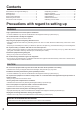 Contents Ŷ Precautions with regard to setting up ........................2 Ŷ Maintenance .............................................................3 Ŷ Components .............................................................4 Ŷ Touch Panel Assembly ..............................................5 Ŷ Mounting Touch Panel ...............................................6 Ŷ Connection with Computer ........................................8 Ŷ Operating Conditions.................................................
