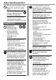 Turvatoimet Tämä merkki varoittaa VAROITUS loukkaantumisen ja aineellisen vahingon vaarasta. Noudatettavat ohjeet luokitellaan seuraavien symbolien avulla: Tämä symboli merkitsee KIELLETTYÄ toimintaa. Nämä symbolit kuvaavat PAKOLLISIA toimia.