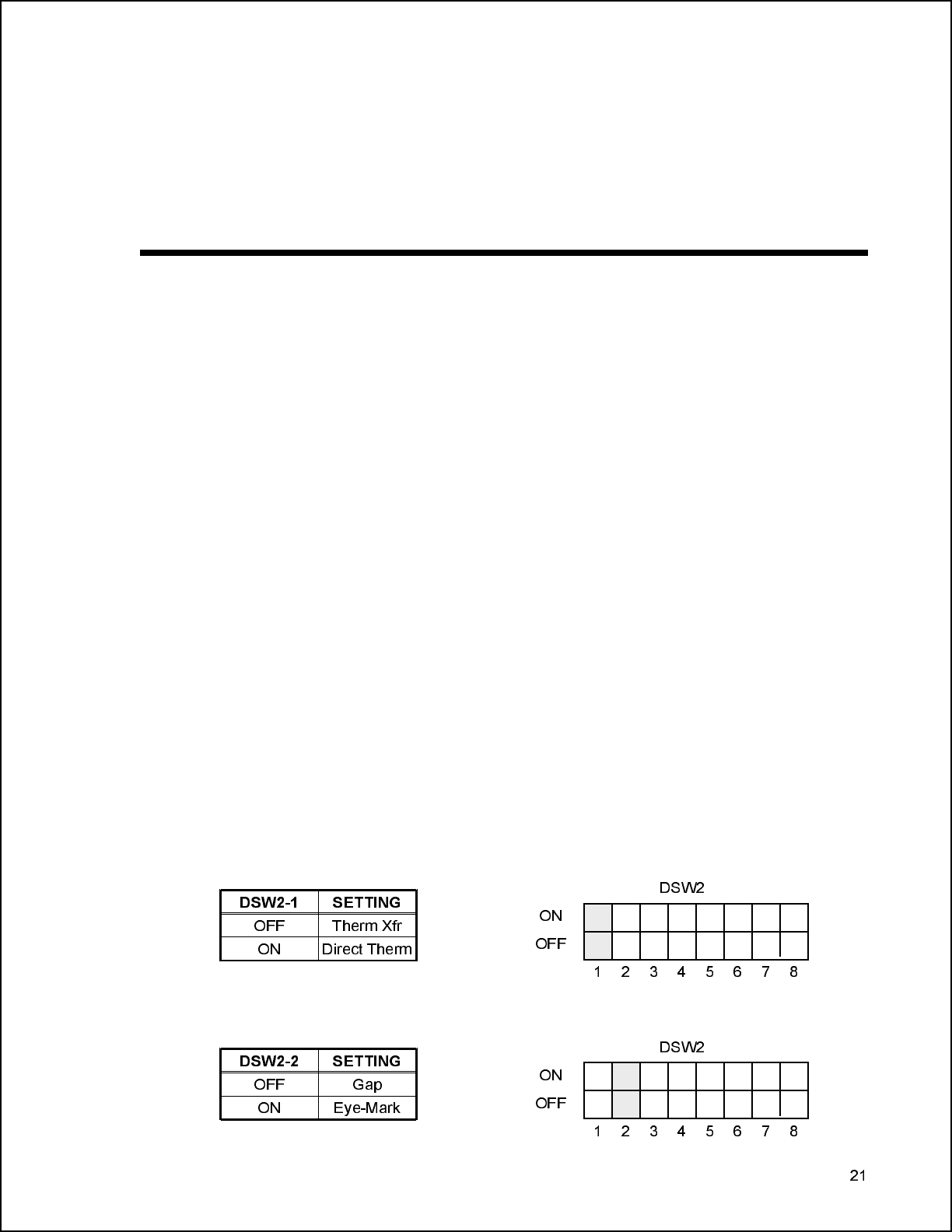 Print Mode Selection (DSW2-1). Selects between direct thermal printing on