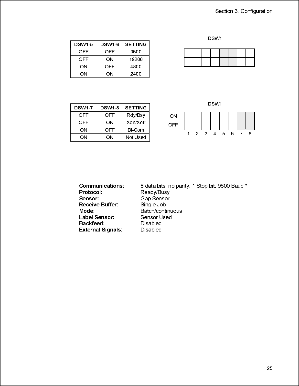 Baud Rate Selection (DSW1-5, DSW1-6). Selects the data rate (bps) for the