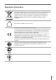 Regulatory Information This symbol indicates that, at the end of your product’s life, it must not be discarded as domestic waste. Instead, you should dispose of your used equipment at a designated collection point for the recycling of waste electrical and electronic equipment. Ref: EU Directive 2002/96/EC on Waste Electrical and Electronic Equipment (WEEE). Please contact your distributor / supplier for further information. This product is suitable for indoor use only.