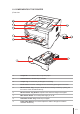 | Rear view 1 4 2 5 3 1 USB Interface: For connecting directly to the computer 2 Network Interface (optional): For connecting the printer to the network 3 Power Socket: For connecting the power cord 4 Rear Cover: It can be opened to check for jammed paper 5 Duplex printing unit: For release of paper jammed during duplex printing at the back of the printer 1-4