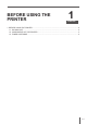 BEFORE USING THE PRINTER 1 CHAPTER 1. BEFORE USING THE PRINTER.......................................................................................................2 1.1. PACKING LIST............................................................................................................................2 1.2. COMPONENTS OF THE PRINTER............................................................................................3 1.3. TONER CARTRIDGE ......................................................
