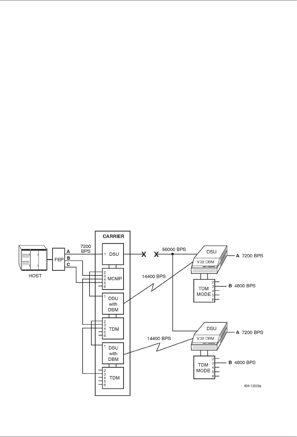 Figure D-15. MCMP FEP Port-Sharing Configuration – Dial Backup Active
