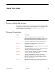 About This Guide Conventions Used Convention Used When Used Italic To indicate variable information (e.g., DLCI nnnn). Menu selection sequence To provide an abbreviated method for indicating the selections to be made from a menu or selections from within a menu before performing a procedural step. For example, Main Menu → Status → System and Test Status indicates that you should select Status from the Main Menu, then select System and Test Status from the Status menu).