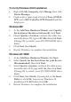 Windows 95 1. 2. 3. 4. 5. At the Update Device Driver Wizard, click Next. Insert the driver CD, and click Other Locations. Type in D:\9x, click OK, then Finish. (Change D: to match your CD-ROM drive letter) From the Insert Disk window, click OK. When the Copying Files dialog box appears, type in D:\9x, then click OK. (Change D: to match your CD/DVD-ROM drive letter) Restart Windows to complete the installation. To Verify Windows ME / 98SE / 98 / 95 Installation 1. 2.