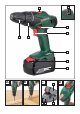 Before first use 1. Insert the battery pack 7 into the quickcharger 10 (see Fig. C). 2. Insert the power plug into the socket. The now glowing red charging control LED 12 indicates that the charging process has begun. The red charging control LED 12 extinguishes as soon as the battery pack is fully charged. 3. The green charging control LED 11 signals to you that the charging process is complete and the battery pack 7 is ready for service.