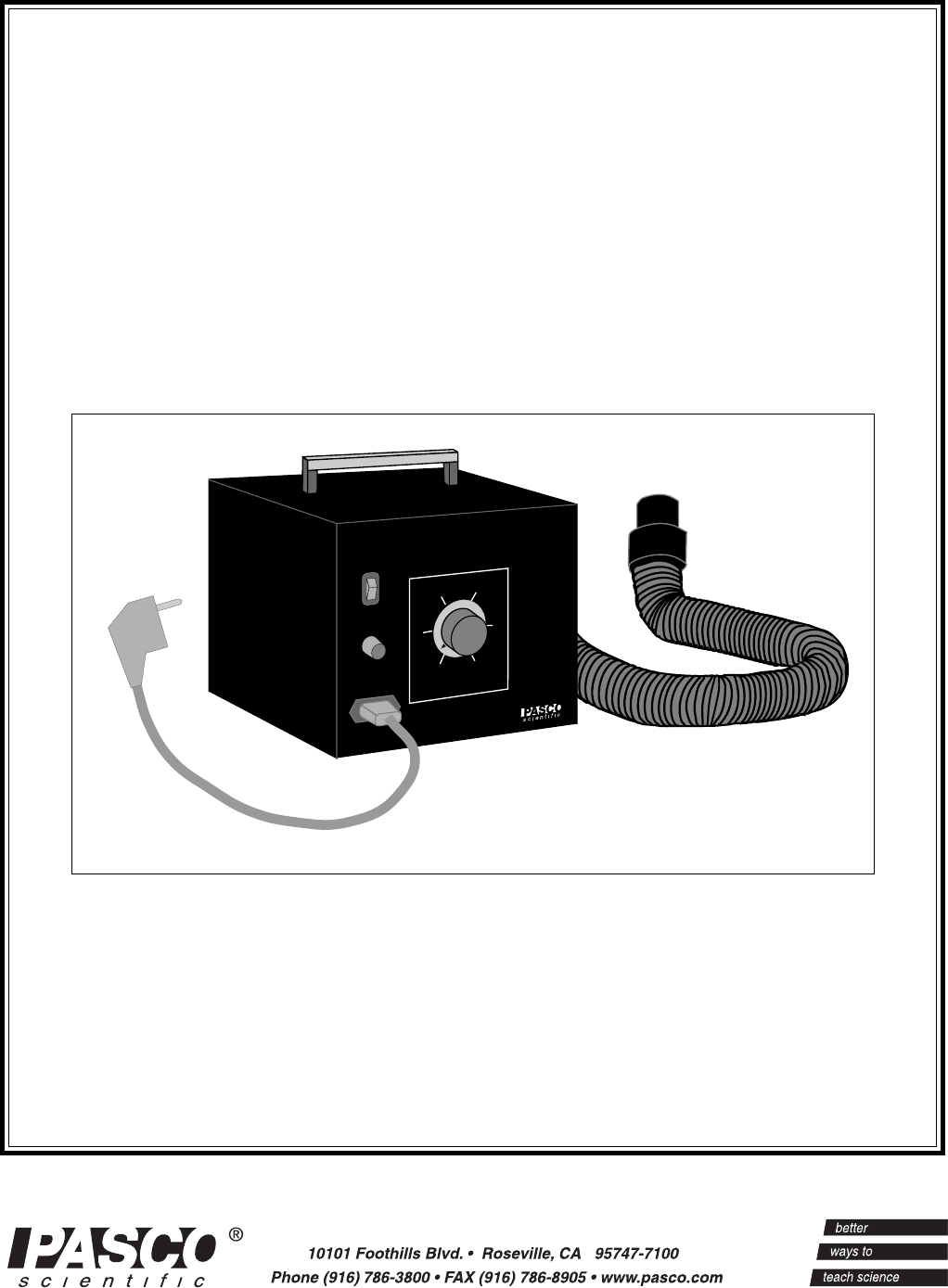 Variable Output Air Supply 012-02141H Copyright, Warranty and Equipment Return Please—Feel free to duplicate this manual subject to the copyright restrictions below. Copyright Notice Equipment Return The PASCO scientific Model SF-9216 Variable Output Air Supply manual is copyrighted and all rights reserved.