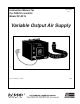 Variable Output Air Supply 012-02141H CAUTION RISK OF ELECTRIC SHOCK DO NOT OPEN The lightning flash with arrowhead, within an equilateral triangle, is intended to alert the user of the presence of uninsulated “dangerous voltage” within the product’s enclosure that may be of sufficient magnitude to constitute a risk of electric shock to persons. CAUTION: TO PREVENT THE RISK OF ELECTRIC SHOCK, DO NOT REMOVE BACK COVER. NO USER SERVICEABLE PARTS INSIDE. REFER SERVICING TO QUALIFIED SERVICE PERSONNEL.