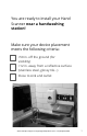Mark the spot 1. Remove the mounting plate from the box and select your installation location. 2. Hold the mounting plate so that the brackets stick out towards you. Important: For maximum impact, choose a wall next to your handwashing station. 3. Use your tape measure to confirm that the distance between the floor and the top of the bracket is less than 50 in. Important: To avoid light interference place the Hand Scanner at least 12 in. from any reflective surfaces (stainless steel, glossy tile, mirror etc.