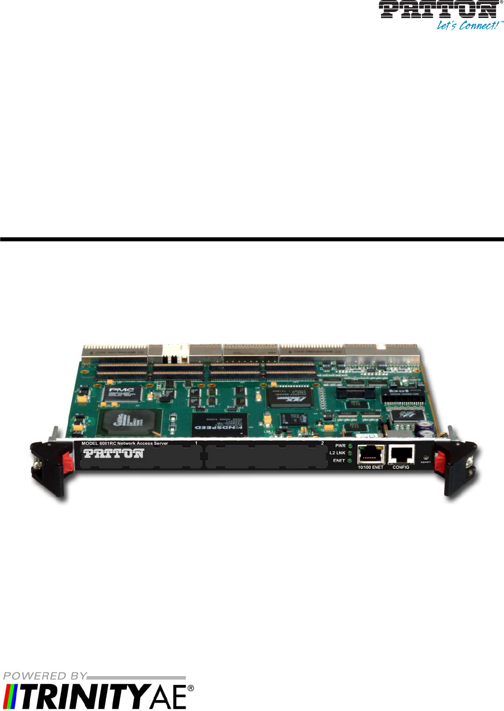 Model 6081RC EdgeRoute Network Access Server User Manual Sales Office: +1 (301) 975-1000 Technical Support: +1 (301) 975-1007 E-mail: support@patton.com WWW: www.patton.com Part Number: 07MD6081RC-GS, Rev.
