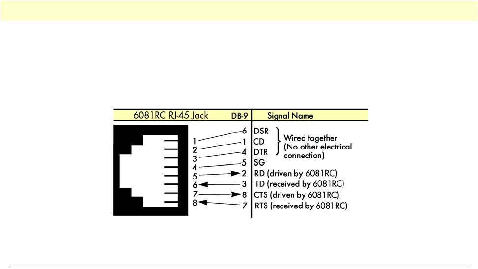 Install the supplied RJ-45-to-RJ-45 cable with the DB9-RJ45 adapter between the Model 6081RC RS-232