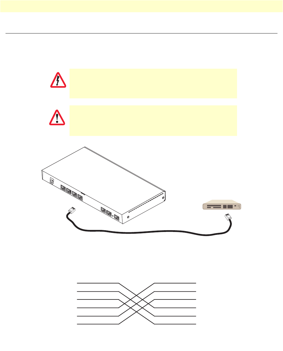 the PRI with a PBX. A cross-over cable is required to connect to an NT device, as illustrated in figure 12 on