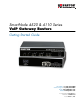 Model 4520 & 4110 Series Getting Started Guide 1 • General information SmartNode 4520 Series router The SmartNode 4520 Series are compact VoIP Gateway Routers that support two to eight VoIP calls and various combinations of FXS and FXO ports (see figure 2). 10 /10 0E the rn et Vo ic eP ort s 0/3 0/2 0/1 0/0 FX S Figure 2.