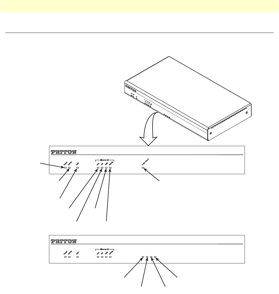 Figure 3 shows SmartNode 4940 front panel LEDs, the LED definitions are listed in table 4.