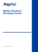 Mobile Checkout Developer Guide Document Number: 10044.en_US-200910 © 2009 PayPal, Inc. All rights reserved. PayPal is a registered trademark of PayPal, Inc. The PayPal logo is a trademark of PayPal, Inc. Other trademarks and brands are the property of their respective owners. The information in this document belongs to PayPal, Inc. It may not be used, reproduced or disclosed without the written approval of PayPal, Inc. Copyright © PayPal. All rights reserved. PayPal (Europe) S.à r.l. et Cie., S.C.A.