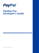 Payflow Pro Developer’s Guide Document Number: 200010.en_US-200910 © 2009 PayPal, Inc. All rights reserved. PayPal is a registered trademark of PayPal, Inc. The PayPal logo is a trademark of PayPal, Inc. Other trademarks and brands are the property of their respective owners. The information in this document belongs to PayPal, Inc. It may not be used, reproduced or disclosed without the written approval of PayPal, Inc. Copyright © PayPal. All rights reserved. PayPal (Europe) S.à r.l. et Cie., S.C.A.