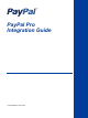 PayPal Pro Integration Guide Document Number: 10116.en_US-201207 © 2012 PayPal, Inc. All rights reserved. PayPal is a registered trademark of PayPal, Inc. The PayPal logo is a trademark of PayPal, Inc. Other trademarks and brands are the property of their respective owners. The information in this document belongs to PayPal, Inc. It may not be used, reproduced or disclosed without the written approval of PayPal, Inc. Copyright © PayPal. All rights reserved. PayPal (Europe) S.à r.l. et Cie., S.C.A.