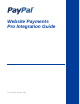 Website Payments Pro Integration Guide Document Number: 100001.en_US-200910 © 2009 PayPal, Inc. All rights reserved. PayPal is a registered trademark of PayPal, Inc. The PayPal logo is a trademark of PayPal, Inc. Other trademarks and brands are the property of their respective owners. The information in this document belongs to PayPal, Inc. It may not be used, reproduced or disclosed without the written approval of PayPal, Inc. Copyright © PayPal. All rights reserved. PayPal (Europe) S.à r.l. et Cie., S.C.