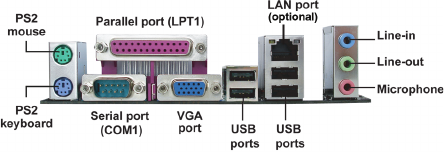 Use the upper PS/2 port to connect a PS/2 pointing device.