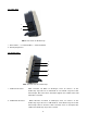3.3. Left side panel 1. 2. Fig. 2 Left side panel 1. Power switch:“―” represents power ON; “○” represents power OFF. 2. AC power input jack 3.4. Right side panel 1. 2. 3. 4. Fig. 3 Right side panel 1. USB Host port: It is used to transfer data when external USB equipment connects to the oscilloscope regarded as “Host equipment”. For example: upgrading software by USB flash disk needs to use this port. 2.