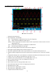 3.7. User interface introduction Fig. 6 Illustrative Drawing of Display Interfaces 1. Waveform Viewing Area. 2. The Trigger State indicates the following information: Auto: The oscilloscope is under the Automatic mode and is collecting the waveform under the non-trigger state. Trig: The oscilloscope has already detected a trigger signal and is collecting the after-triggering information.