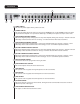 Front Panel 20 18 14 14 15 16 17 18 15 16 17 19 21 RHYTHM CHANNEL POST CONTROL This control adjusts the volume of the Rhythm channel. HIGH CONTROL This passive control regulates the high frequencies for the Rhythm channel. MID CONTROL This passive control regulates the mid frequencies for the Rhythm channel. LOW CONTROL This passive control regulates the low frequencies for the Rhythm channel.