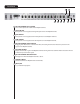 Front Panel 20 18 14 14 15 16 17 18 15 16 17 19 CONTRÔLE POST CANAL RYTHME Ce contrôle ajuste le volume du canal Rythme CONTRÔLE DES AIGUËS Contrôle passif de régulation des hautes fréquences pour le canal Rythme CONTRÔLE DES MEDIUMS Contrôle passif de régulation des fréquences médium pour le canal Rythme CONTRÔLE DES BASSES Contrôle passif de régulation des fréquences basses pour le canal Rythme INTERRUPTEUR CRUNCH SUR CANAL RYTHME Engager cet interrupteur met en fonction l’effet Crunch, augmen