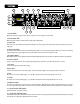 Front Panel 1 5 7 9 10 14 2 15 3 16 4 6 8 12 25 14–22 full parametric EQ 17 18 19 21 22 14–22 full parametric EQ 11 20 23 24 26 13 1.Interrupetur de mode silencieux (mute) Quand cet interrupteur est en position ‘sortie’, l’entrée est ‘silencieuse’, très utile pour s’accorder ou juste pour une pause! 2 Led de mode silencieux (mute) Cette Led clignote lorsque le sélecteur 1 est en position ‘sortie’.